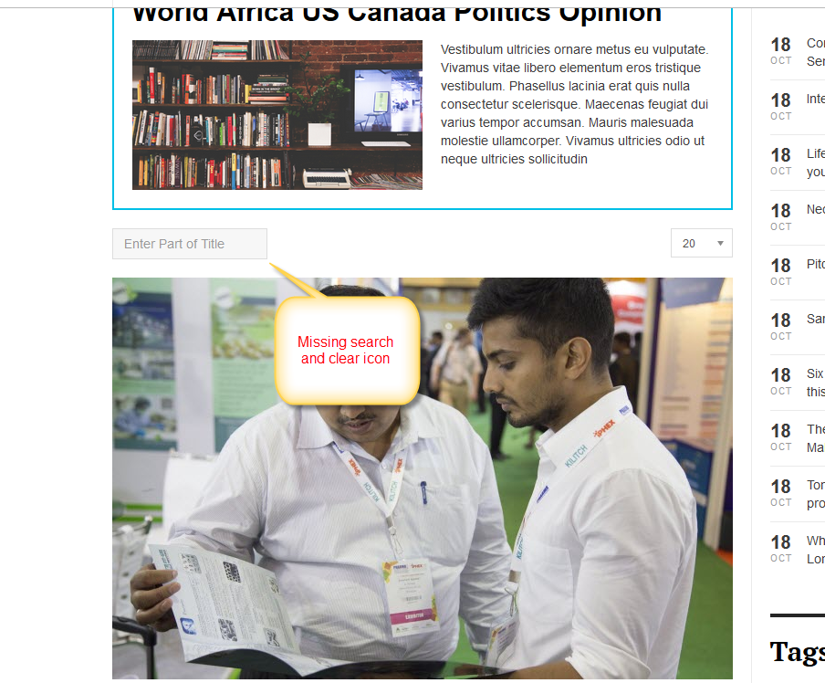 MIssing search and clear icon on tag item page