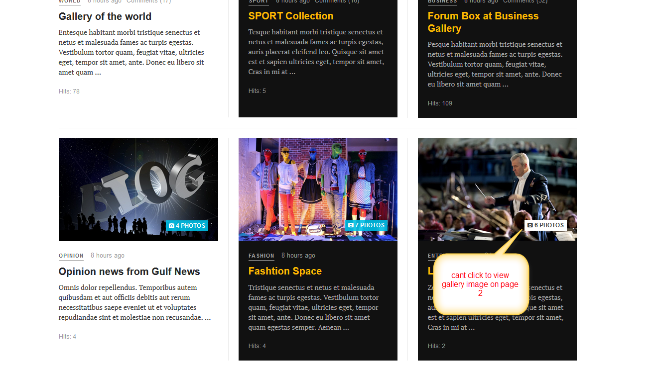Open gallery page >> Click Load more to view more item >> Click on photos link of item which displays on page 2 to see the error